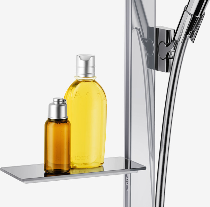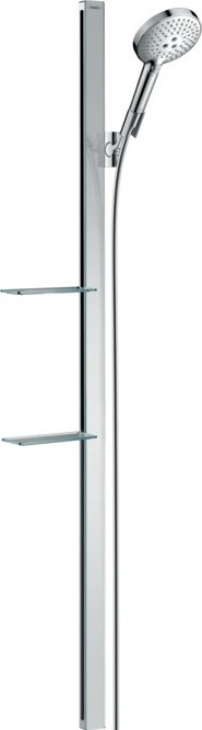 Душевой гарнитур Hansgrohe Raindance Select S 120 3jet 27646400, штанга - 1500 мм, мыльница из безопасного стекла, материал - латунь, цвет - белый/хром.