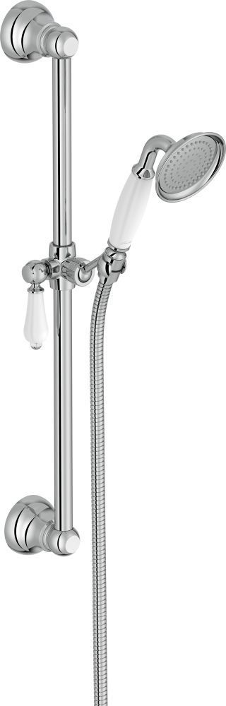 Душевой гарнитур Jacob Delafon Louise E24364-CP c держателем и шлангом 150 см, материал - латунь/пластик/керамика, цвет - хром/белый.
