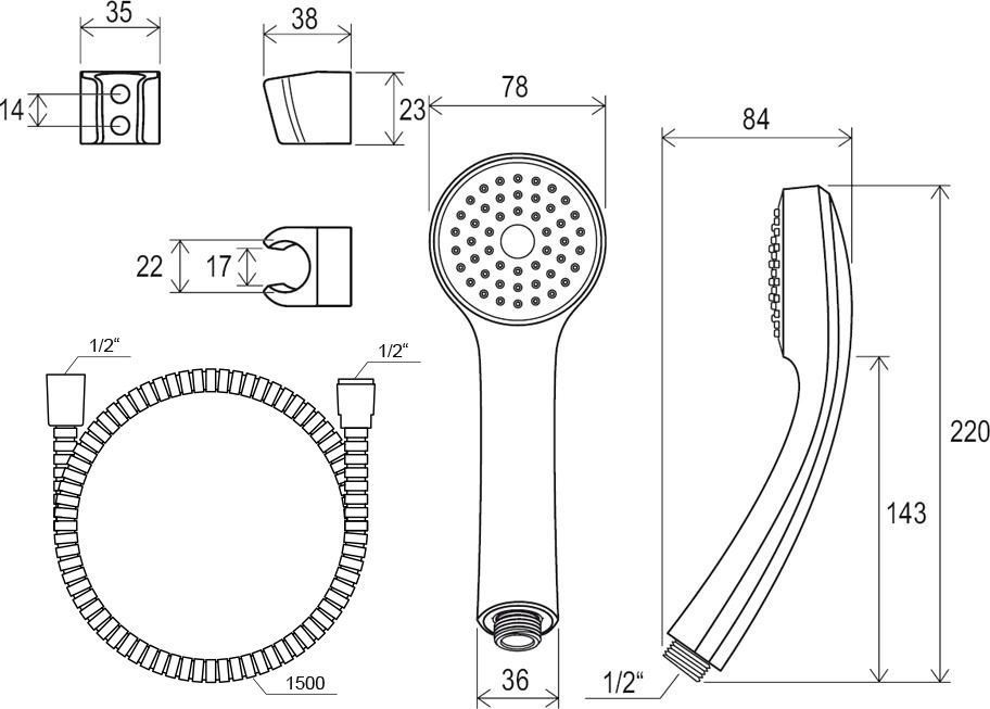 Душевой гарнитур Ravak X07P005 (шланг 150 см, лейка, держатель 68 мм).