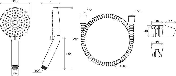 Душевой гарнитур Ravak X07S006 (шланг 150 см, лейка 3 режима диаметр 118 мм, держатель).