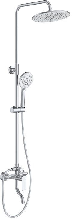 - Оснащение: эксцентрики, переключатель потоков, душевой шланг ПВХ длиной 150 см, ручной душ 3-х режимный, верхний душ, смеситель с поворотным изливом