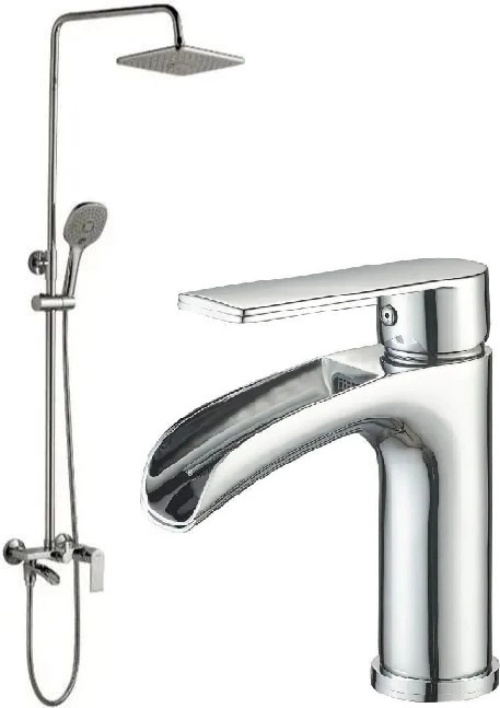 Душевой комплект Haiba: Душевая стойка HB23505 + смеситель для раковины HB13505, материал латунь, цвет хром.