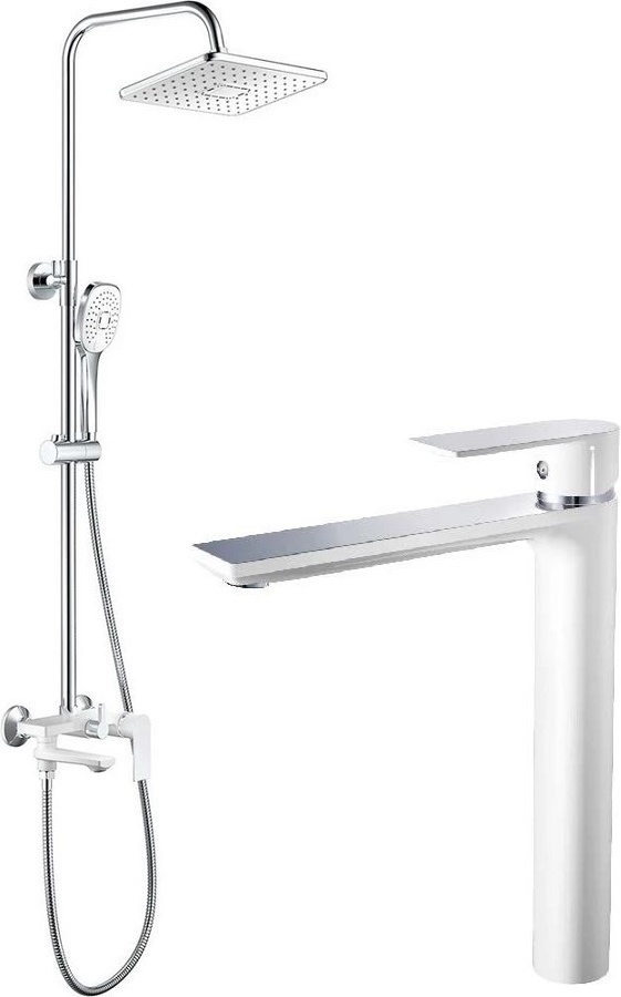 Душевой комплект Haiba: Душевая стойка HB24505-8 + смеситель для раковины высокий HB11505-8, материал латунь, цвет белый/хром.