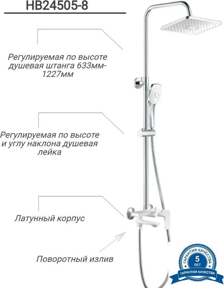 Характеристики душевая система с изливом Haiba (HB24505-8+HB11505-8)