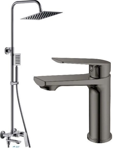 Душевой комплект Haiba: Душевая стойка HB24533-3 + смеситель для раковины HB10533-3, цвет графит