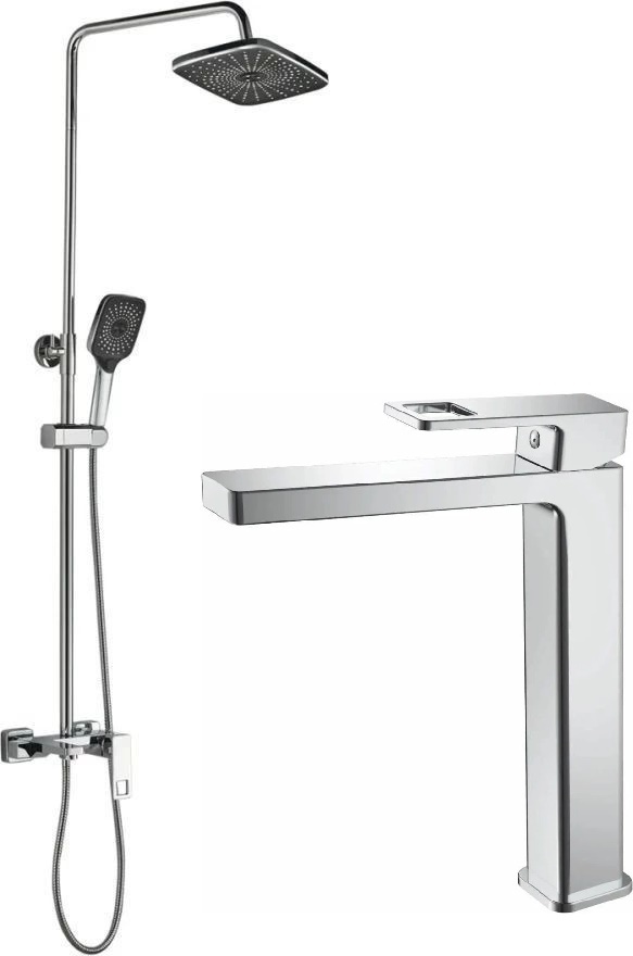 Душевой комплект Haiba: Душевая стойка HB24615 + смеситель для раковины высокий HB11615, материал латунь, цвет хром.