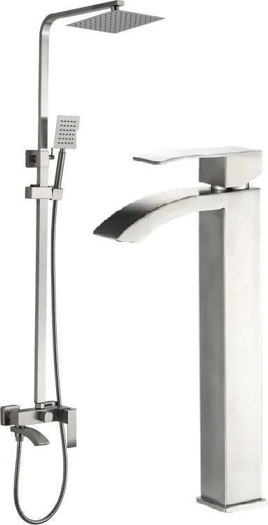 Душевой комплект Haiba: Душевая стойка HB24815 + смеситель для раковины высокий HB11815, материал нержавеющая сталь, цвет сталь.