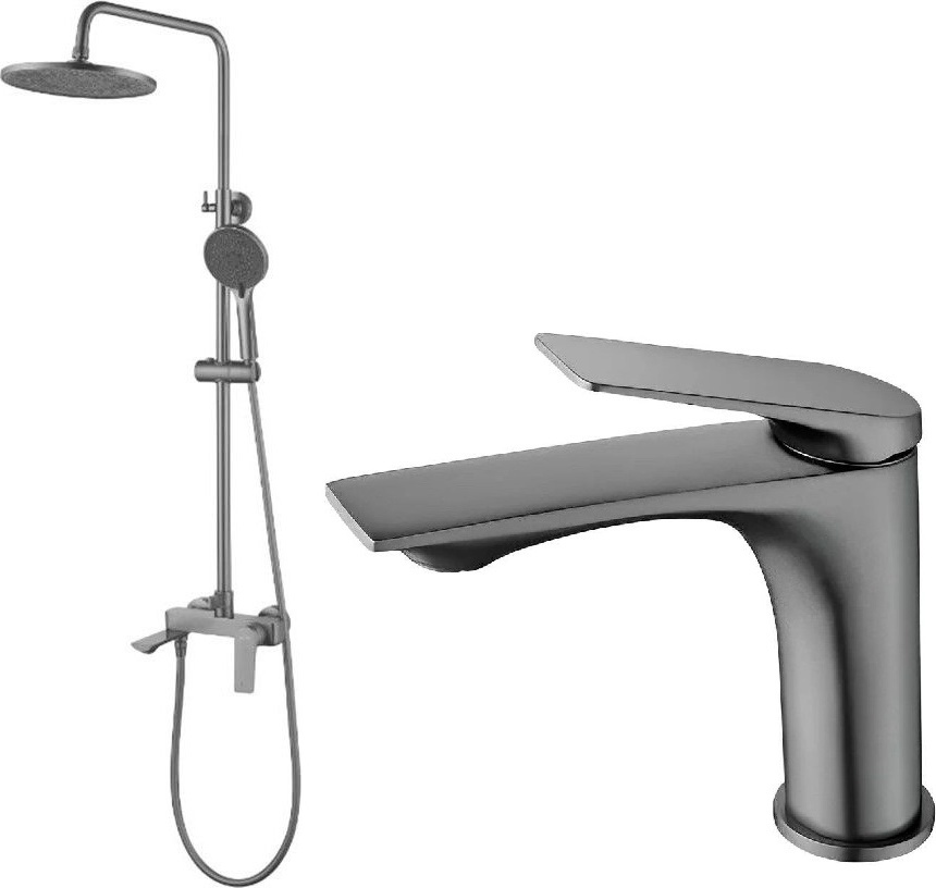Душевой комплект Haiba: Душевая стойка HB24816-3 + смеситель для раковины HB10816-3, цвет графит