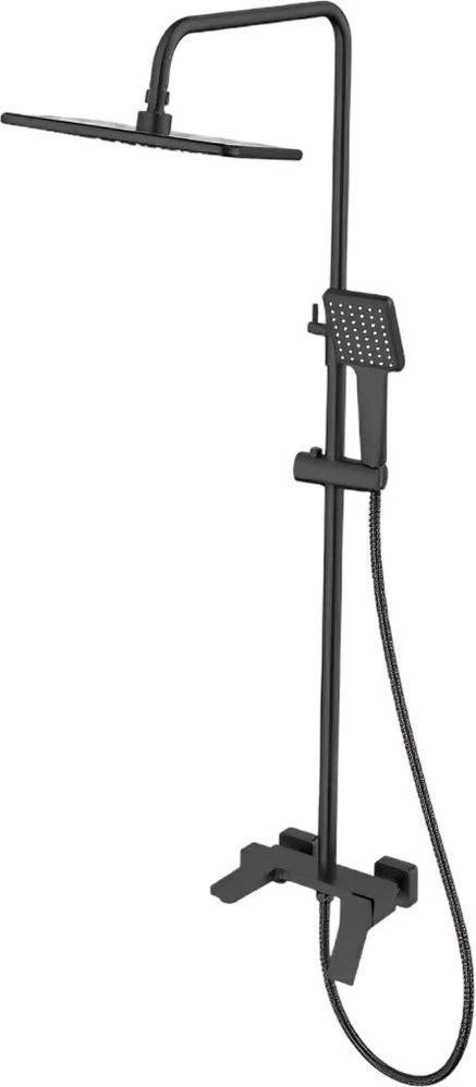Душевой комплект Haiba: Душевая стойка HB24818-7 + смеситель для раковины HB10818-7, материал латунь, цвет чёрный матовый.