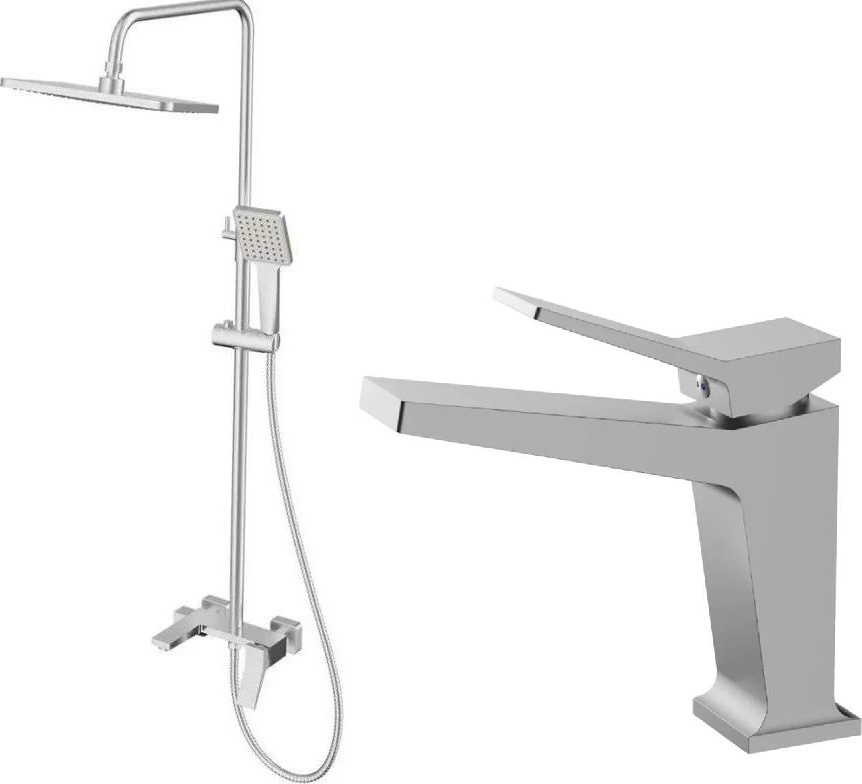Душевой комплект Haiba: Душевая стойка HB24818 + смеситель для раковины HB10818, материал латунь, цвет хром.