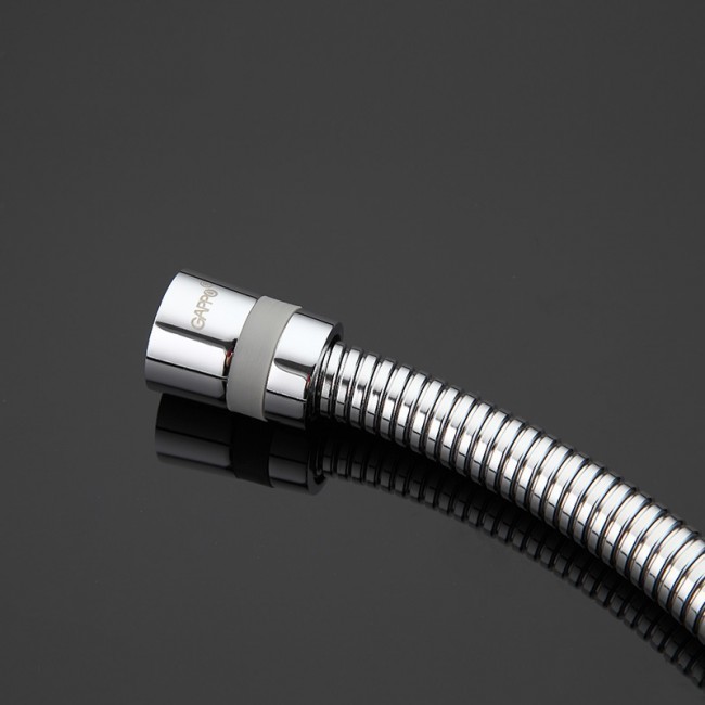 Душевой шланг Gappo G43-1 для душа оснащен конической поворотной гайкой против перекручивания (360 градусов), используется в качестве гибкой магистрали для подачи воды от корпуса смесителя к душевой лейке. Шланг в двойной оплетке усиленный в цвете хром.