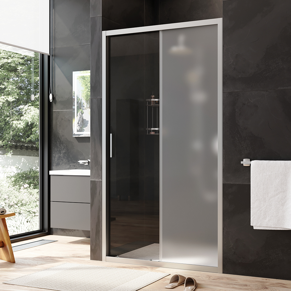 Душевая дверь отличается практичностью и функциональностью. Изделие произведено из ударопрочного закаленного стекла которое надежно фиксируется в нержавеющий алюминиевый профиль при помощи системы скрытых креплений. Ширина конструкции может быть увеличена путем регулирования каркаса на 20 мм что решает проблему неровных стен. Безупречную и плавную работу двери обеспечивают двойные металлические ролики на металлоподшипниках. Конструкция максимально герметична и предотвращает попадание воды на пол ванной комнаты.