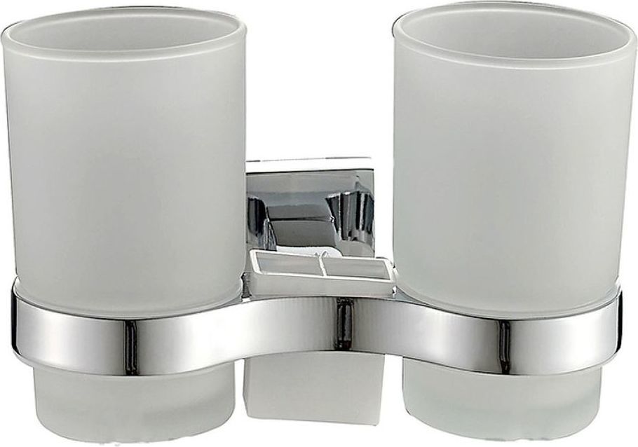 Двойной cтакан для зубных щеток Haiba HB8608 с настенным держателем, материал металл/стекло, цвет хром.