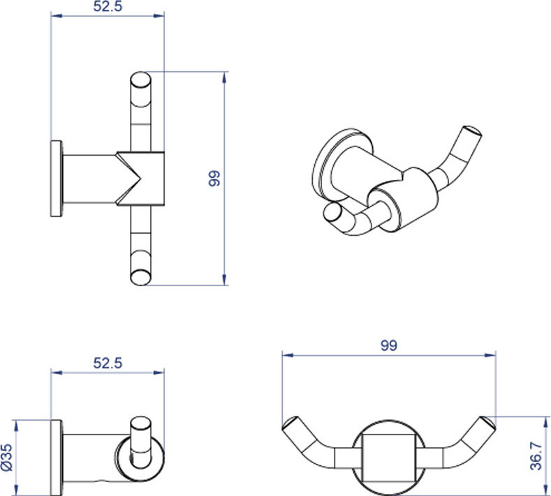 Двойной крючок Azario Forny, материал нержавеющая сталь, цвет хром.