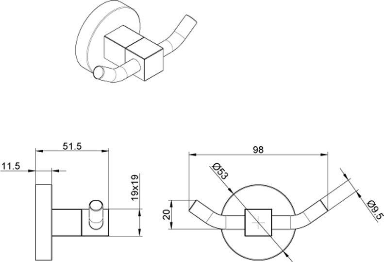 Двойной крючок Azario Nessy, материал нержавеющая сталь, цвет хром.