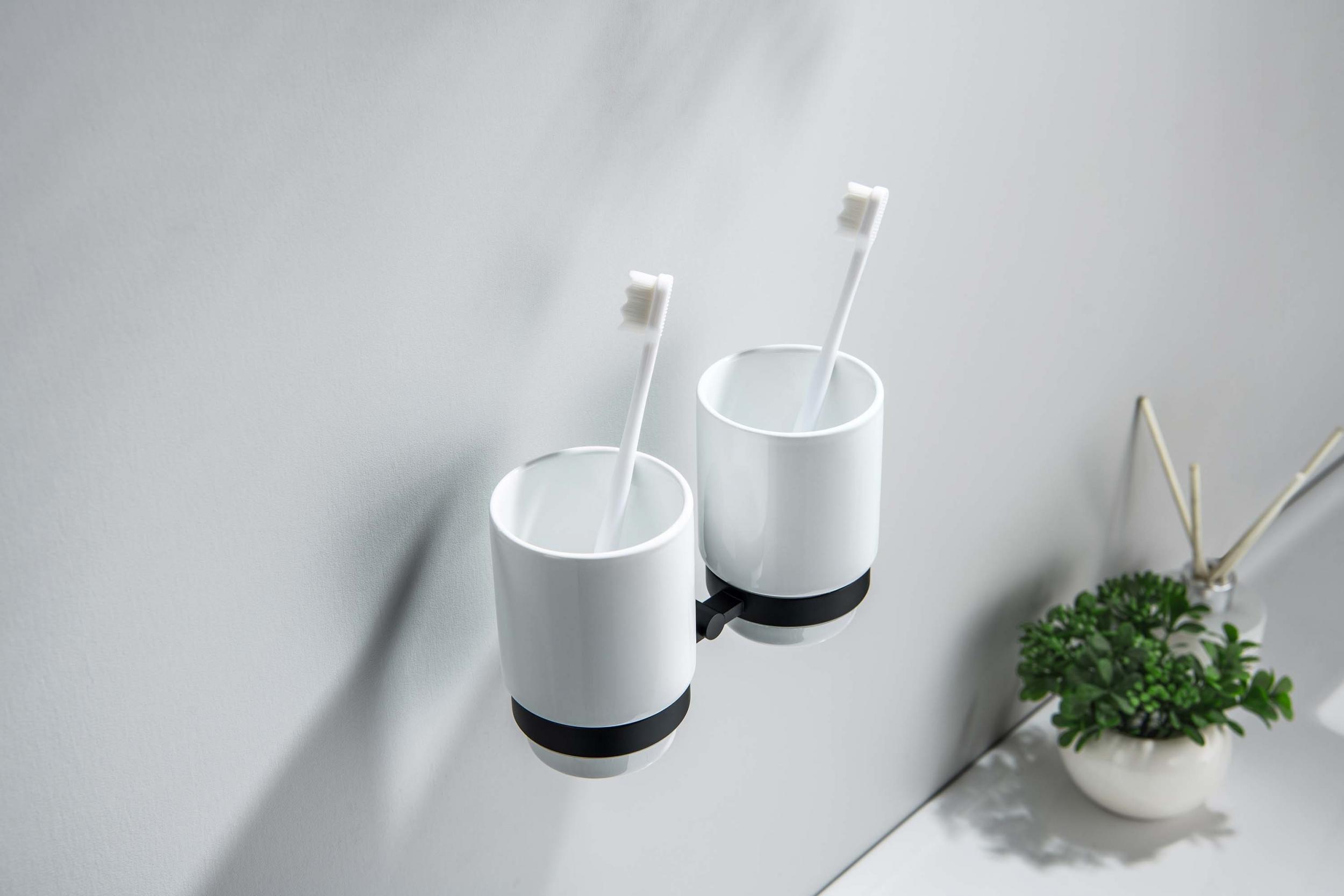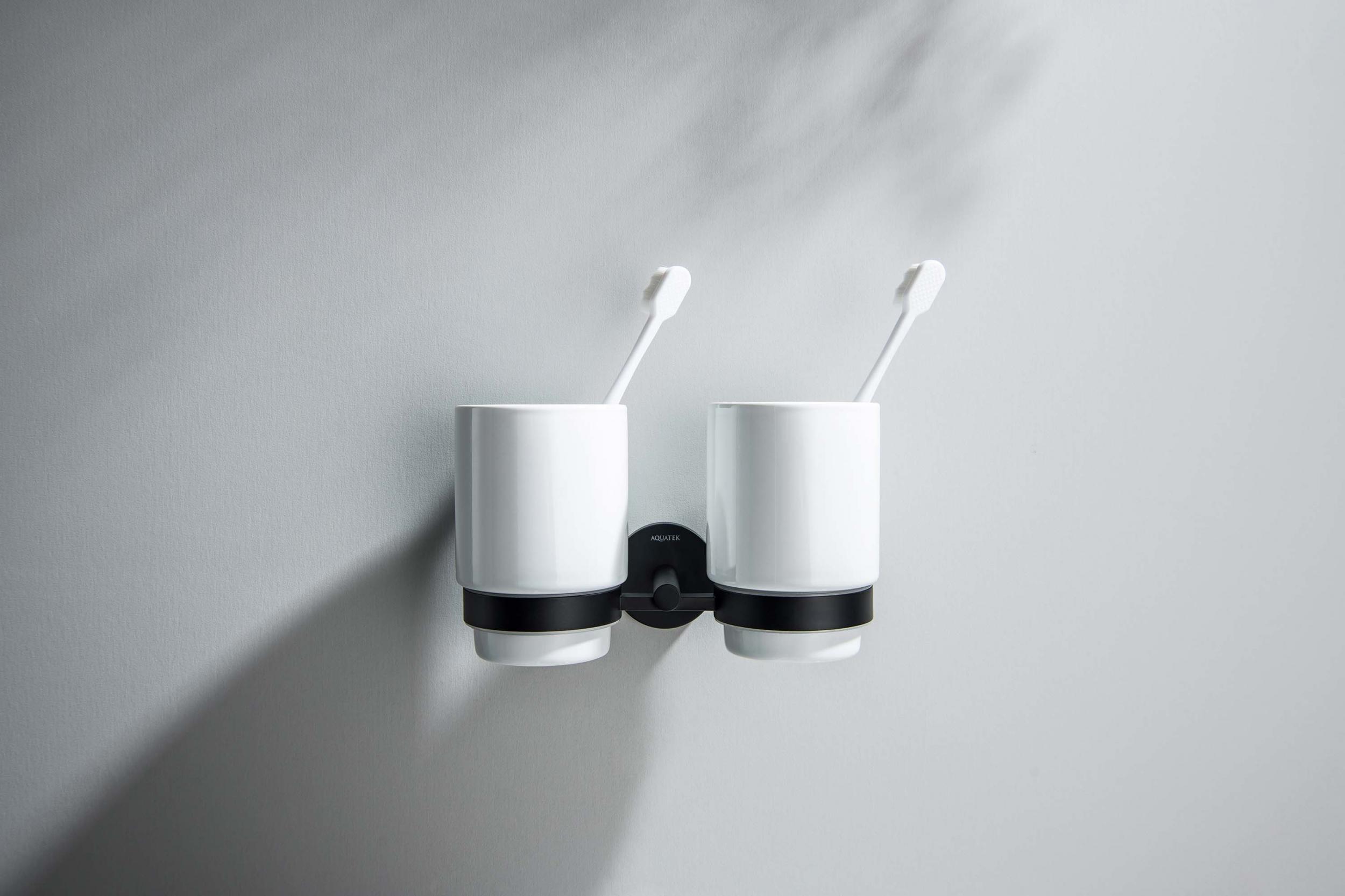 Двойной стакан для зубных щеток Aquatek Бетта AQ4617MB, цвет чёрный матовый