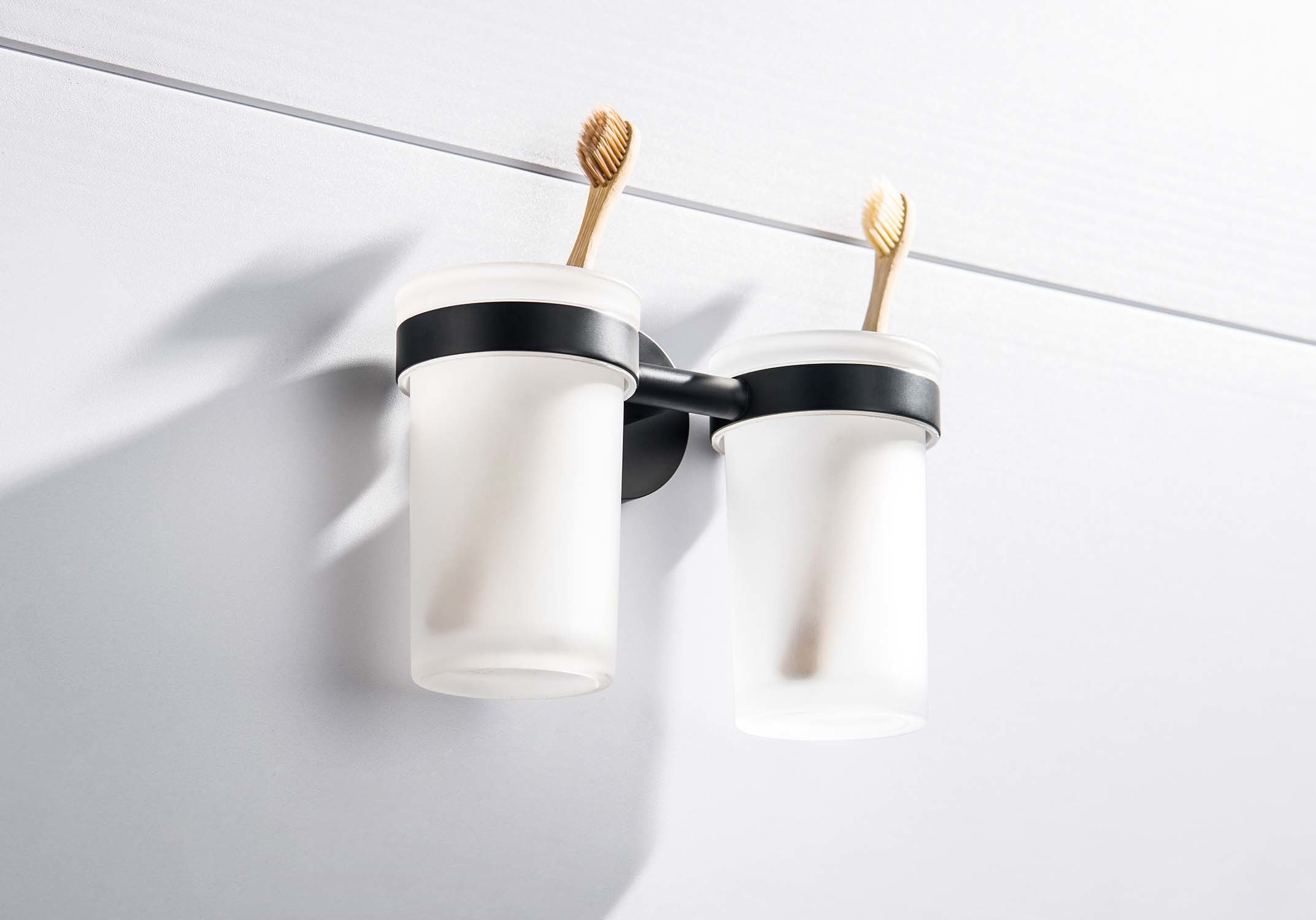 Двойной стакан для зубных щеток Aquatek Европа AQ4117MB, цвет чёрный матовый