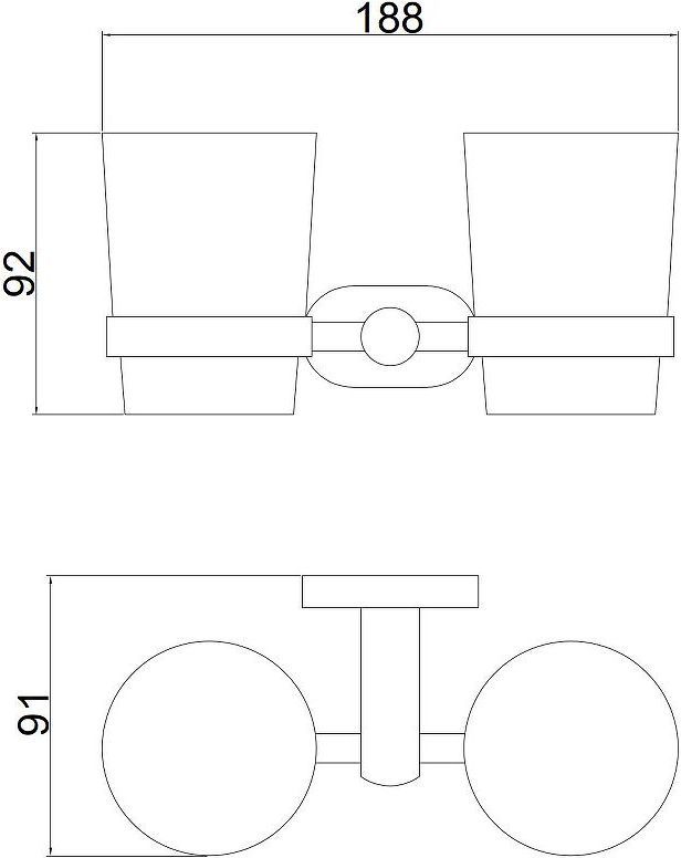 Двойной стакан для зубных щеток Belz B90008 с настенным держателем, материал нержавеющая сталь/стекло, цвет хром.