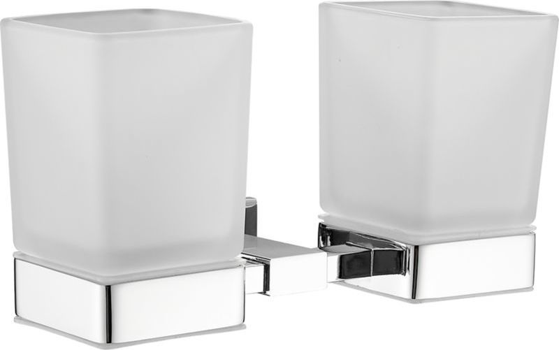 Двойной стакан для зубных щеток Belz B90208 с настенным держателем, материал нержавеющая сталь/стекло, цвет хром.