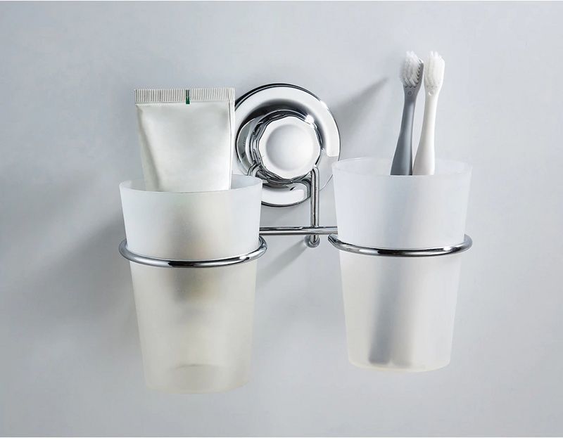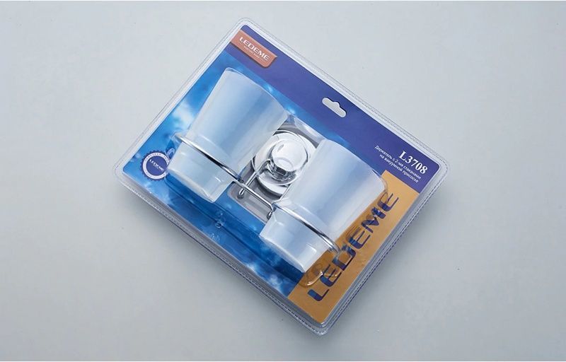 Двойной стакан для зубных щеток Ledeme L3708 с настенным держателем, материал пластик, цвет хром.