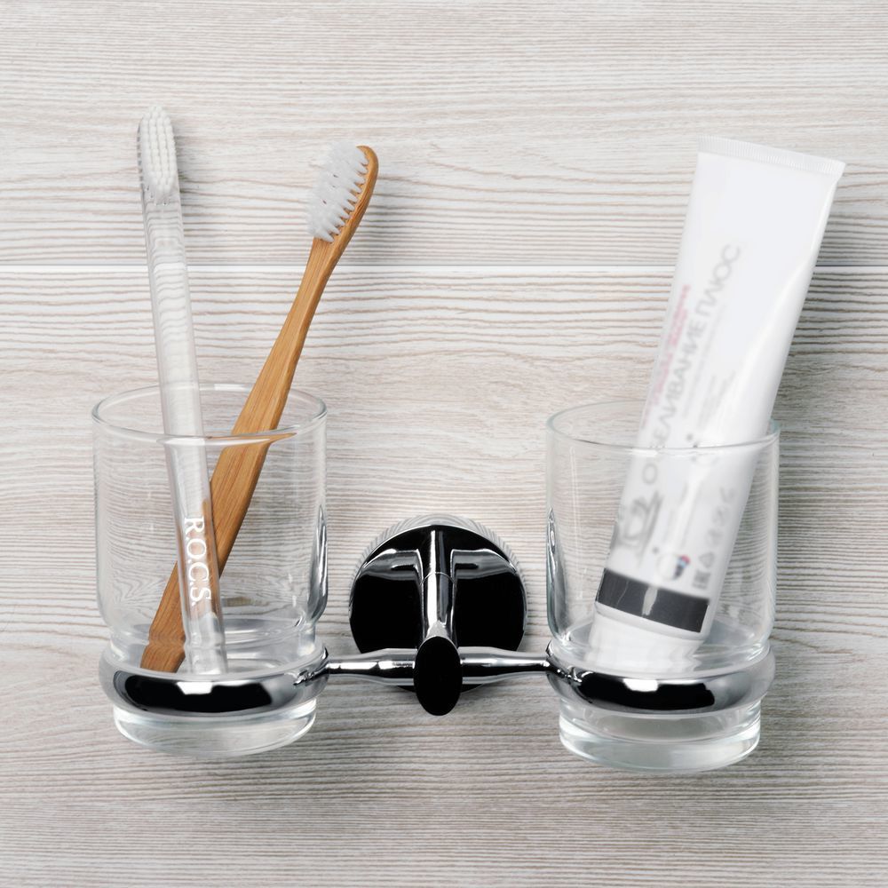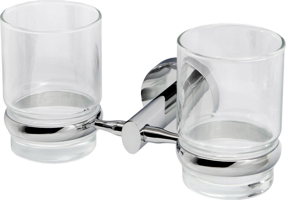Двойной стакан для зубных щеток WasserKraft Rhein K-6228D с настенным держателем, материал металл/стекло, цвет хром.