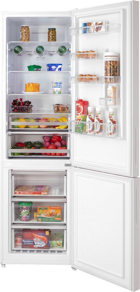 Двухкамерный холодильник Hiberg RFC-400DX NFGW inverter, система FullNoFrost, цвет белый.