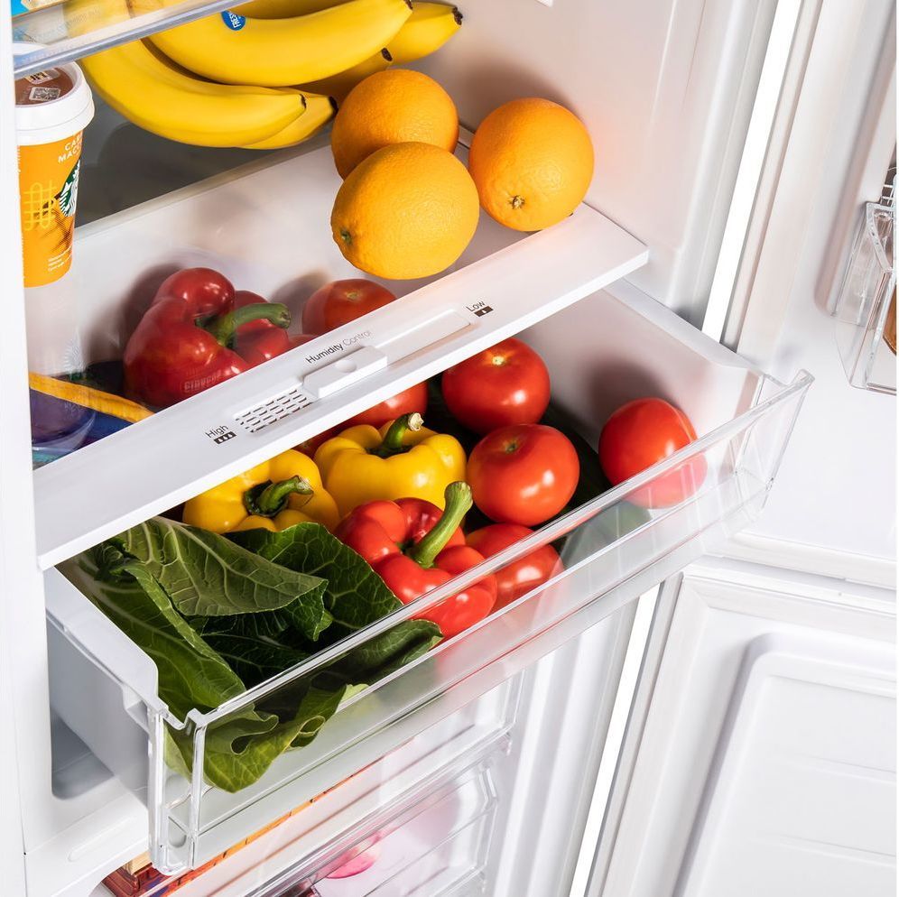 - Управление сенсорное. Кнопки включения/выключения, выбора температуры (+2°C до +8°C) и быстрого охлаждения находятся на дисплее в верхней части холодильника.