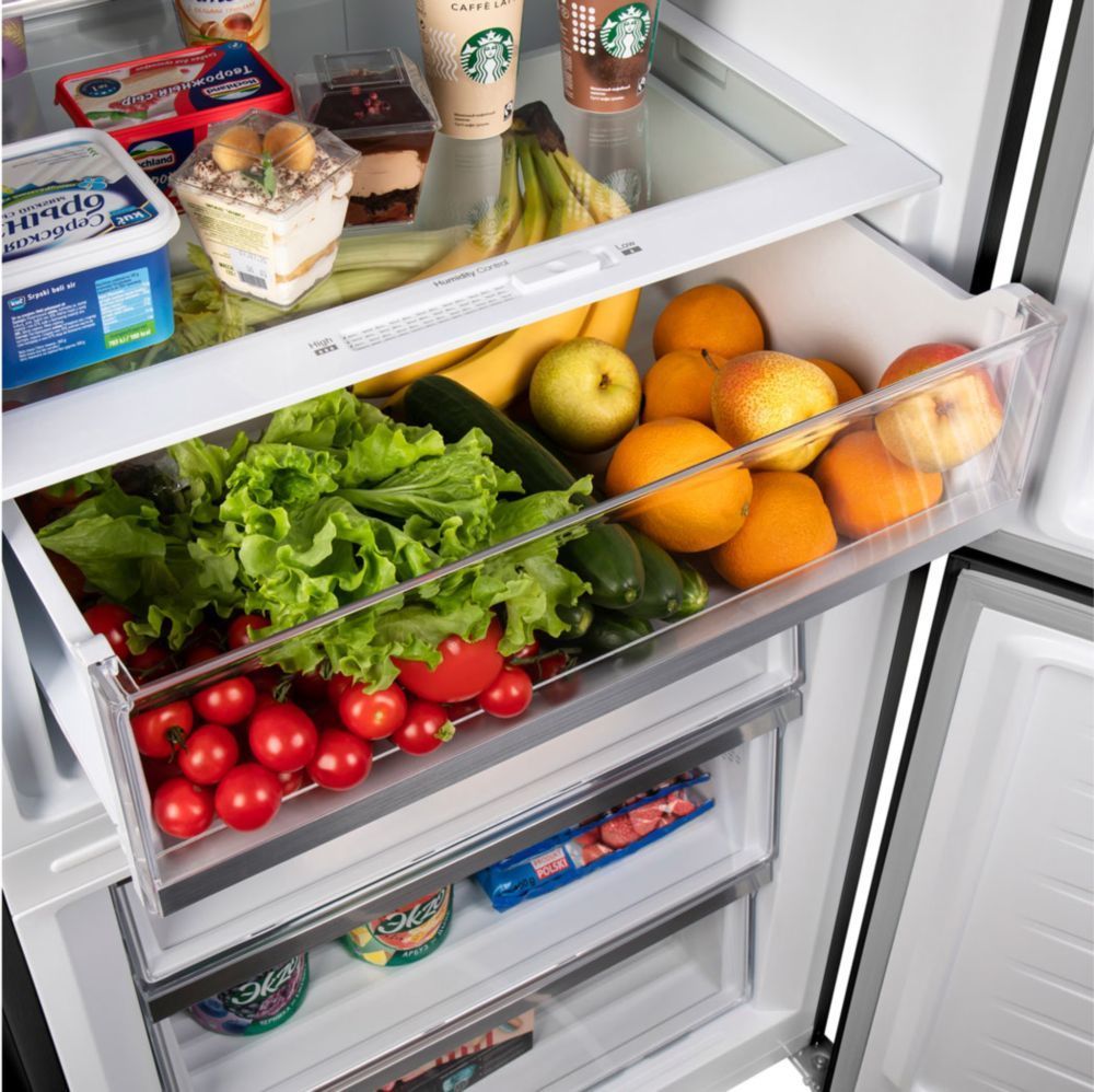 Система охлаждения всего холодильника - «Total No Frost». Это инновационная разработка, при которой холодный сухой воздух равномерно распределяется при помощи вентилятора по всей камере. Благодаря этому на продуктах и внутренних поверхностях прибора не образовывается иней. Теперь вам никогда не придется размораживать холодильник.
