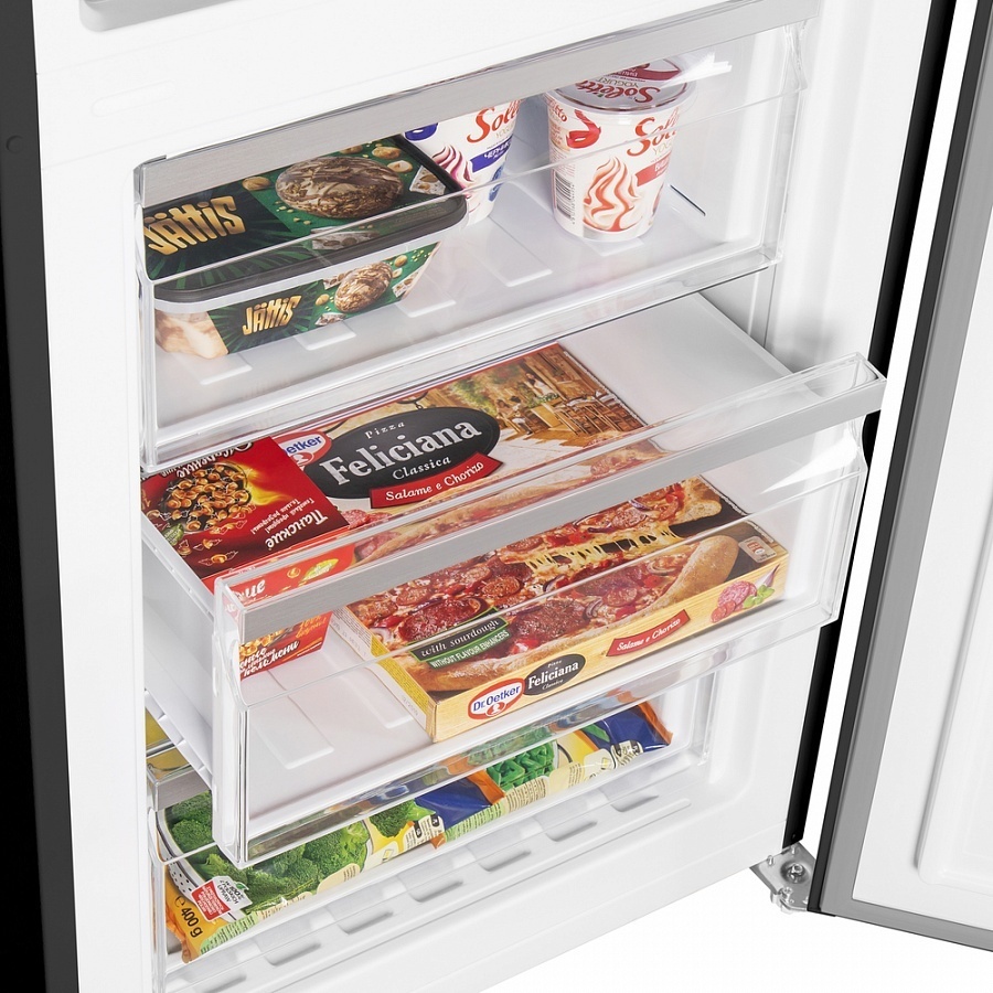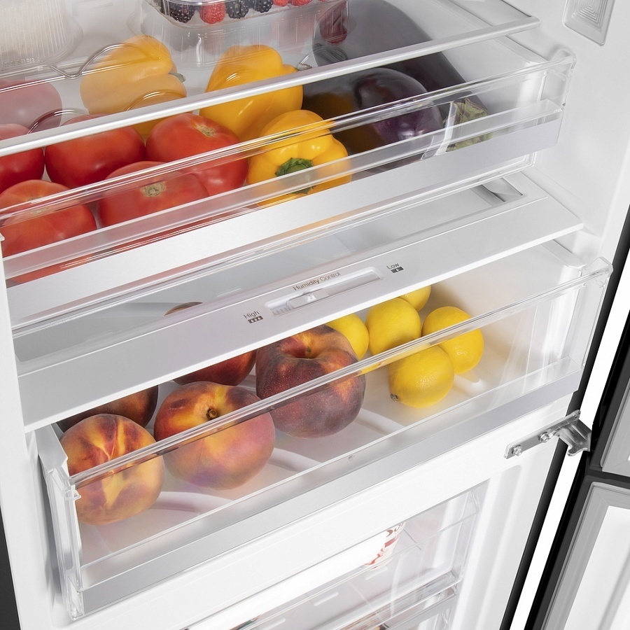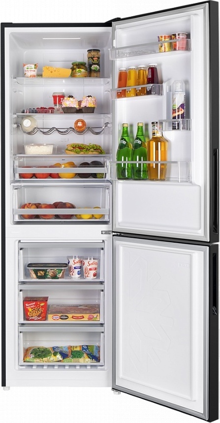 Двухкамерный холодильник Maunfeld MFF185NFB, система Full NoFrost, цвет чёрное стекло.