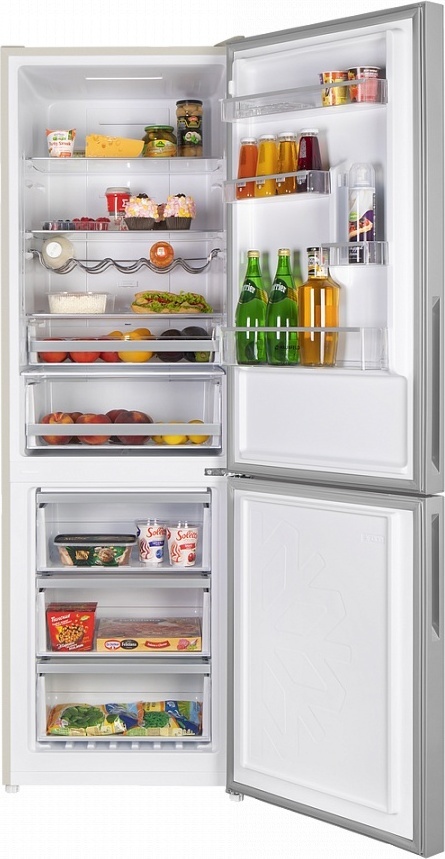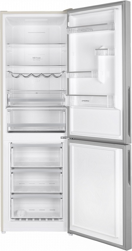 Двухкамерный холодильник Maunfeld MFF185NFBG, система Full NoFrost, цвет бежевое стекло.