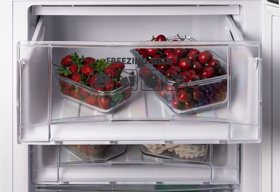 - 3 прозрачных и вместительных ящика в морозильном отделении, где можно длительно хранить большие куски мяса, курицу целиком и другие объемные замороженные продукты;