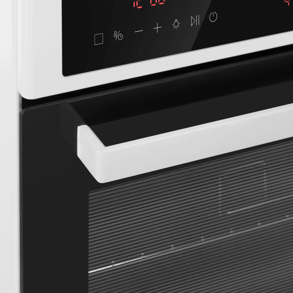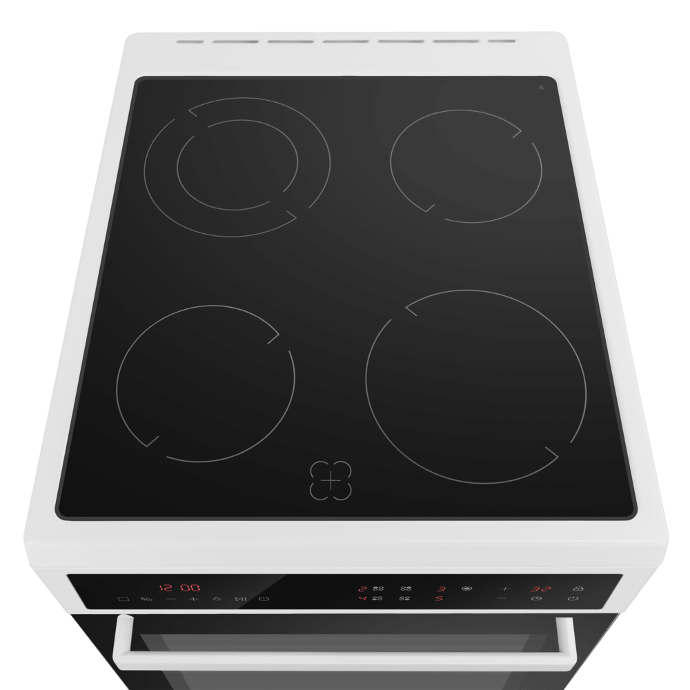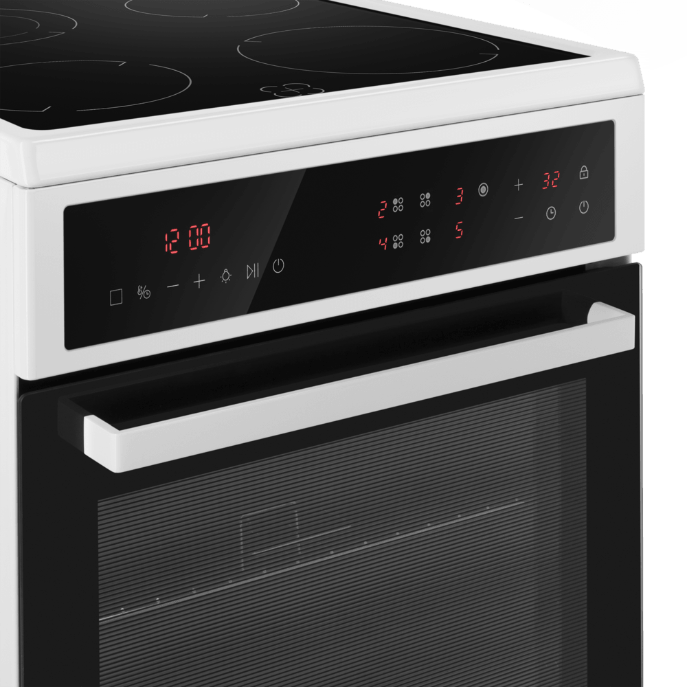 Полноразмерная электрическая плита с сенсорным управлением, варочная поверхность - стеклокерамическая. Техническое оснащение также на уровне - конфорки рабочего стола и духовой шкаф управляются сенсорами, в комплектацию входит многофункциональный таймер. Духовой шкаф оснащен конвекцией и грилем. Благодаря яркому внутреннему освещению виден весь объем духовки, нет необходимости открывать дверцу для контроля готовности блюда. Комфортная в эксплуатации, для удобства ухода за плитой, направляющие для противней - съемные и легко чистятся. Предусмотрен и ящик для хранения кухонной посуды. Модель по праву заслуживает место на Вашей кухне.