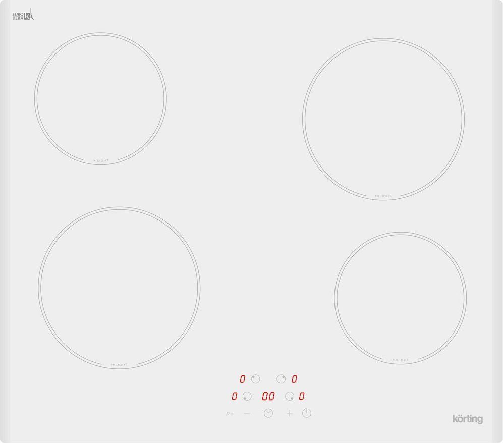 - HiLight: Зоны нагрева Korting оборудованы современными нагревательными элементами HiLight. В этих конфорках в качестве нагревательного элемента применяется уложенная змейкой лента из высокоомного сплава, конфорка достигает установленной рабочей температуры буквально за считанные секунды, позволяет плавно регулировать мощность, излучаемое тепло очень равномерно распределяется по всей рабочей зоне.
