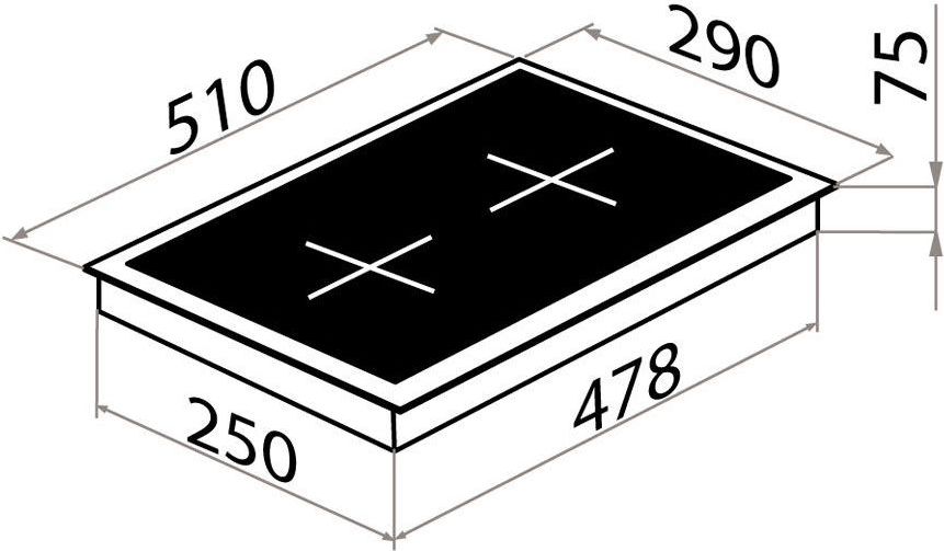 - Hi-Light конфорки, установленные в этой модели, очень быстро нагреваются (за 3-7 секунд). Одна конфорка (d=165 мм) мощностью 1200 Вт, вторая конфорка (d=200 мм) - 2000 Вт.