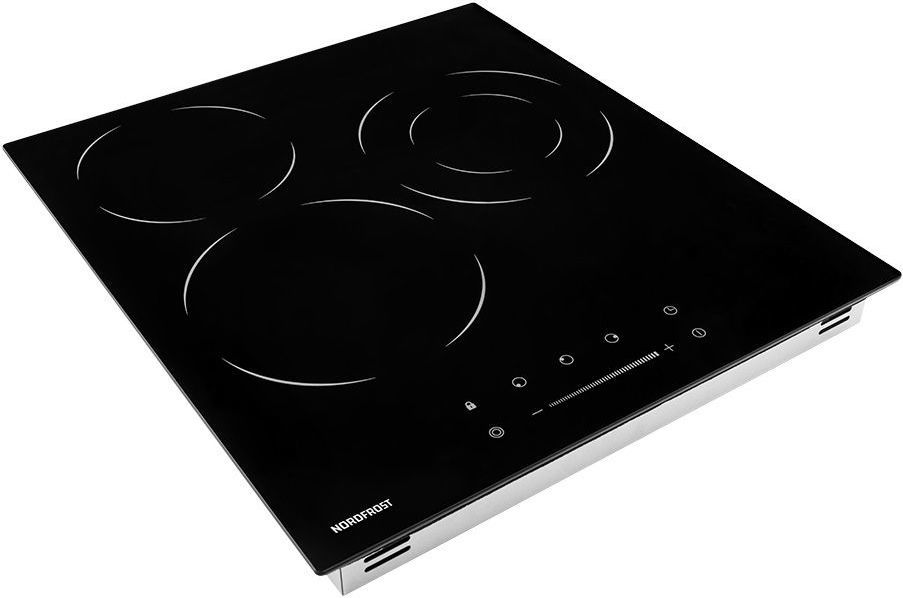 - Встраиваемая электрическая варочная поверхность NORDFROST EM 4539 B выполнена из стеклокерамики Kanger и оснащена 3 электрическими конфорками с сенсорным управлением.