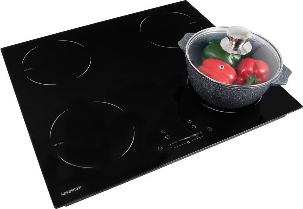 - Встраиваемая индукционная варочная поверхность NORDFROST i-M 6040 B выполнена из стеклокерамики Kanger и оснащена 4 конфорками с сенсорным управлением.
