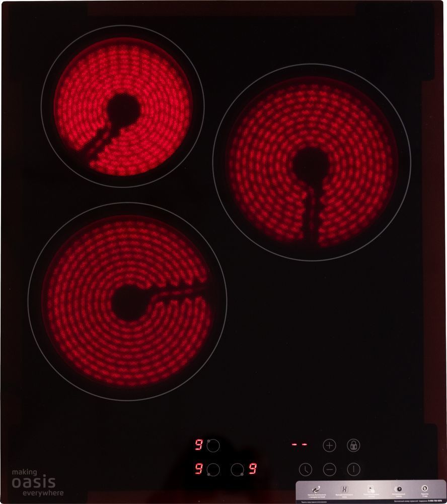 Электрическая встраиваемая варочная панель – современный бытовой прибор, помогающий без труда приготовить множество блюд. Электрическая варочная панель «making Oasis everywhere» имеет 3 энергоэффективные конфорки и оснащена сенсорным управлением с настраиваемым таймером, что позволяет комфортно и легко работать с прибором. Прочный стеклокерамический материал и надёжная система безопасности с самодиагностикой дают возможность пользоваться варочной панелью на протяжении долгого срока службы.