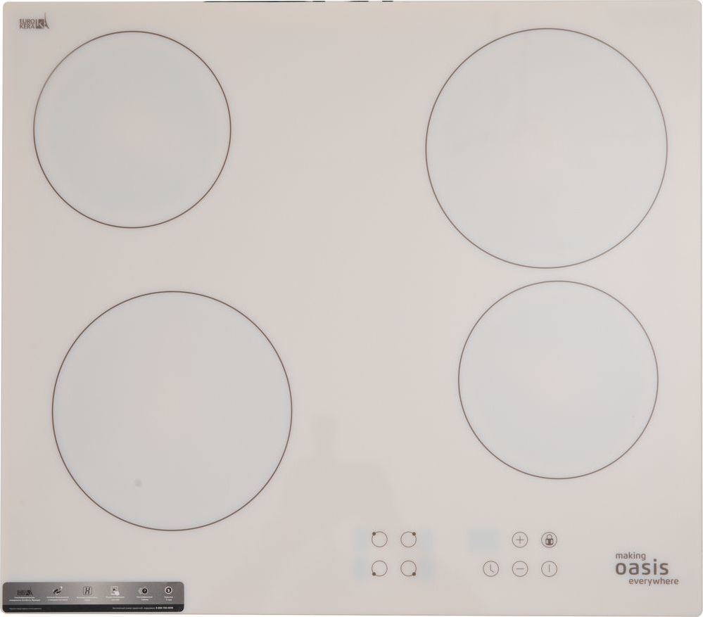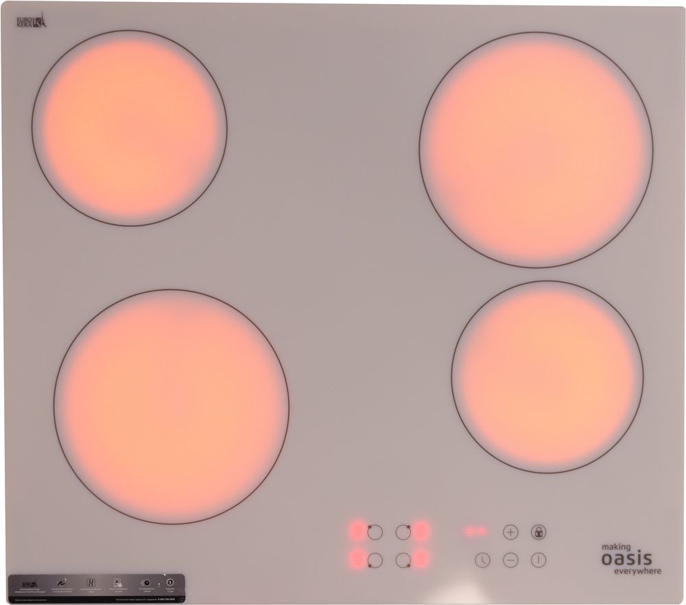 Электрическая встраиваемая варочная панель – современный бытовой прибор, помогающий без труда приготовить множество блюд. Электрическая варочная панель «making Oasis everywhere» имеет 4 энергоэффективные конфорки и оснащена сенсорным управлением с настраиваемым таймером, что позволяет комфортно и легко работать с прибором. Прочный стеклокерамический материал и надёжная система безопасности с самодиагностикой дают возможность пользоваться варочной панелью на протяжении долгого срока службы.