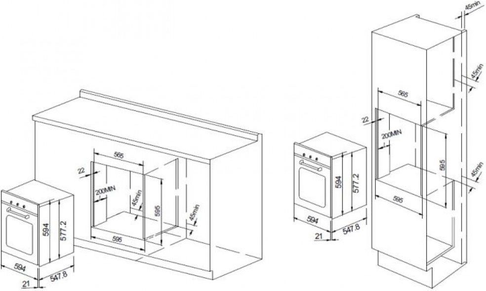 - Размеры: Ш/В/Г= 594/594/569 мм