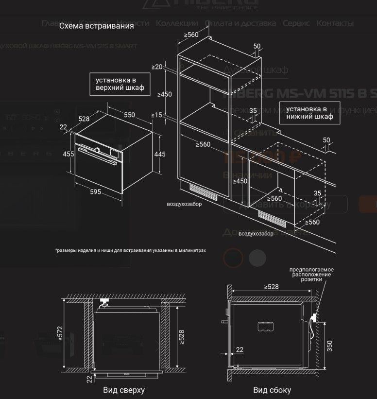 - Встраиваемый духовой шкаф HIBERG MS-VM 5115 W SMART с функцией готовки на пару, грилем, разогревом блюд с помощью микроволн, сенсорной панелью с запрограммированными рецептами — это уникальное устройство, созданное для комфортного приготовления и настоящих кулинарных шедевров!