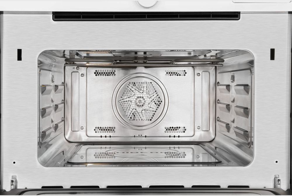 - Режим «Микроволны» может использоваться как отдельная программа для разогревания блюд, так и совместно с другими режимами нагрева: пар и микроволны, гриль и микроволны. Это позволяет готовить широкий спектр блюд — от простых закусок до сложных десертов — и все с помощью одного устройства.