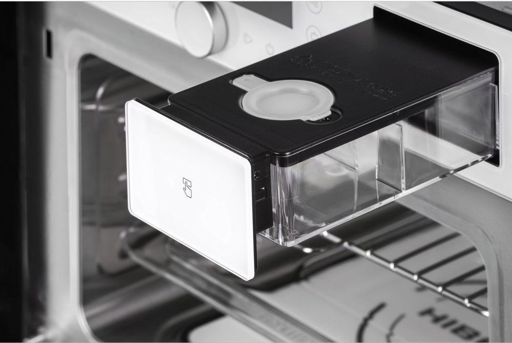 - Функция сушки обеспечивает быстрое высыхание влажных поверхностей духового шкафа после очистки паром. Это позволяет избежать образования неприятных запахов и поддерживать полную чистоту в камере.