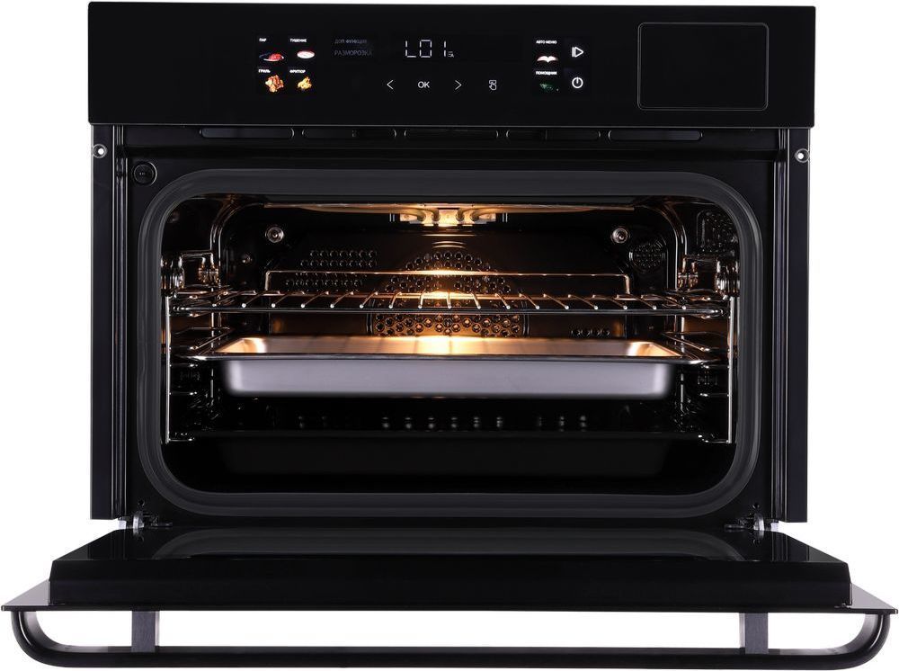 - Компактный духовой шкаф имеет внутренний объем 47 литров и высокую мощность нагрева до 2000 Вт. Быстрый и мощный нагрев в сочетании с функцией конвекции и кольцевым нагревательным элементом позволяют получить сочные и нежные блюда с хрустящей корочкой.