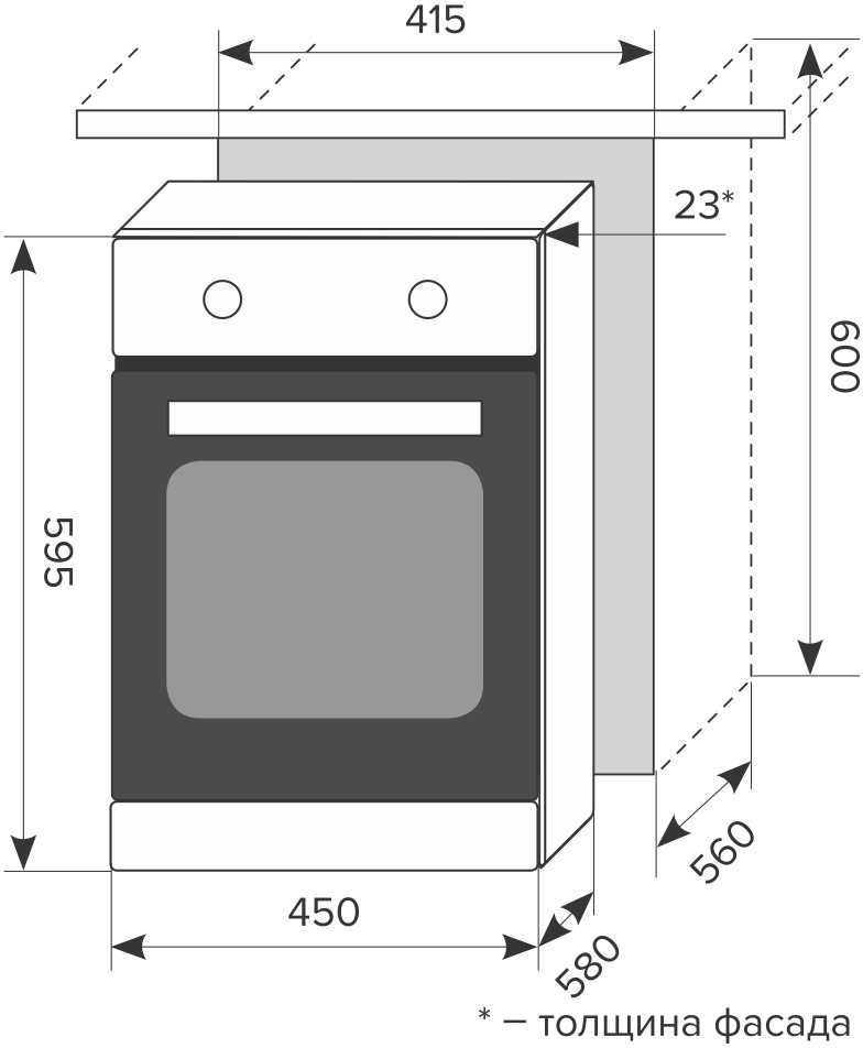 - Размер для встраивания (ВхШхГ): 600х415х560 мм