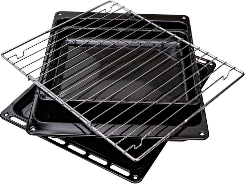 - В комплекте: глубокий противень, 2 прямоугольных противня и хромированная решетка.