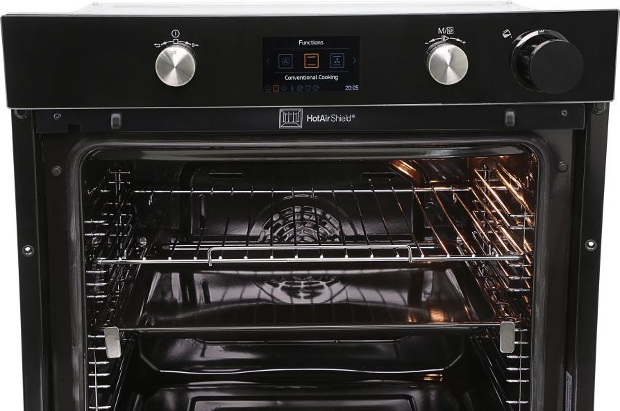 - HOT AIR SHIELD делает процесс приготовления более безопасным, предотвращая выход горячего воздуха наружу при открытии дверцы.