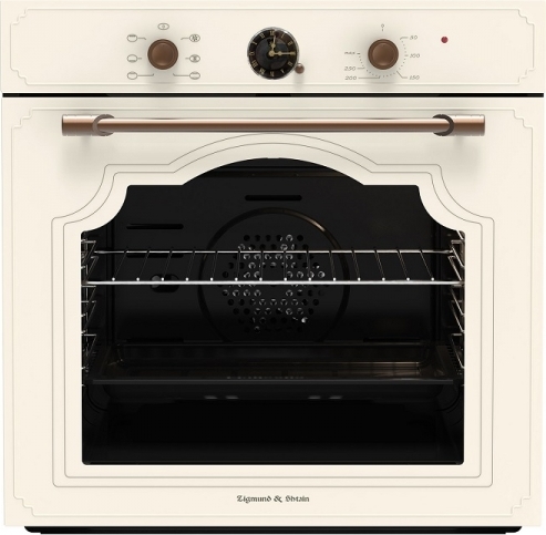 - Духовой шкаф Zigmund Shtain E 138 X, в бежевом цвете, органично впишется в Вашу кухню ретро-стиля. шесть режимов нагрева и освещение позволят Вам приготовить практически любое блюдо, аналоговой программатор поможет Вам установить время работы духовки с последующим отключением. Электрическая духовка Зигмунд Штайн E 138 X имеет тангенциальное охлаждение и холодный фронт, что сделает пользование духовкой безопасным. Металлическая ручка дверцы и ручки управления.