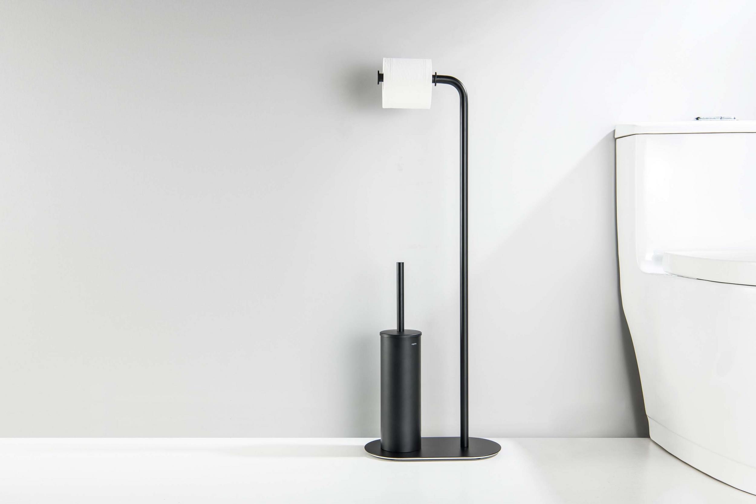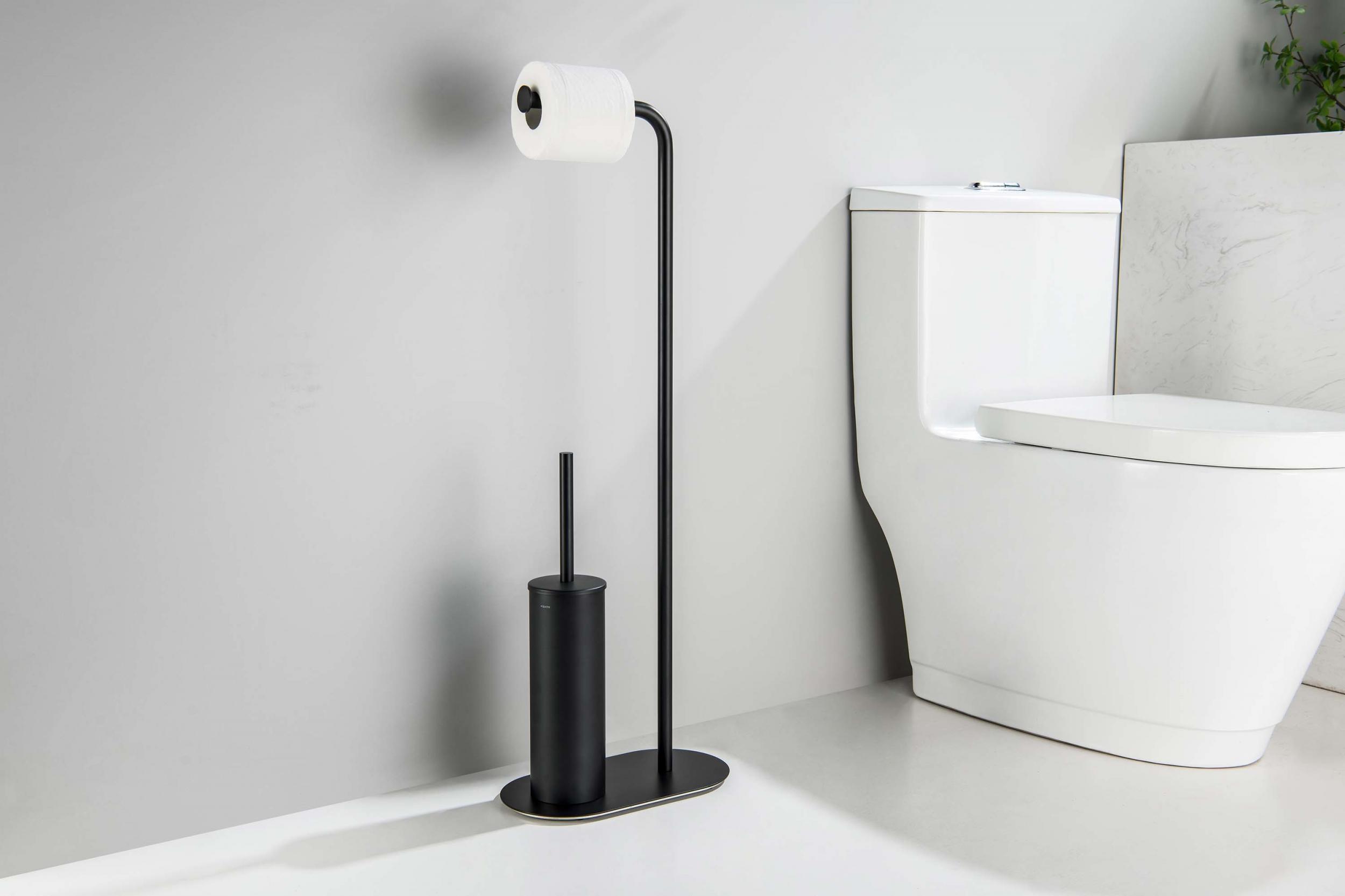 Ёршик для унитаза с держателем для туалетной бумаги Aquatek Оберон AQ4231MB, цвет чёрный матовый