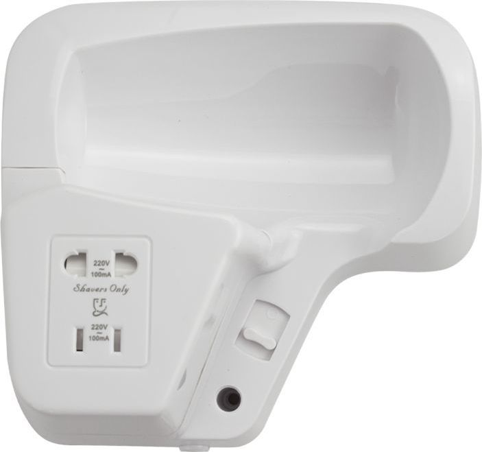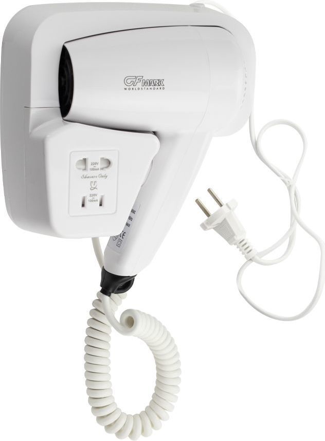 Фен для волос профессиональный, супермощный, в ванную комнату с боковым креплением с розеткой для бритвы, предназначен для сушки волос потоком теплого воздуха. Идеально подходит для установки в гостиницах, бассейнах, фитнес-клубах, в раздевалках складских и производственных комплексов. Так же может использоваться в личных ванных комнатах. Электрический фен позволяет комфортно и быстро высушить волосы после душа. Настенный держатель дает возможность хранить электроприбор в ванной комнате. Материал корпуса выполнен из белого высокопрочного пластика АБС, устойчивого к механическим повреждениям, перепадам температуры и коррозии. Поэтому электроприбор подходит не только для домашнего, но и для общественного использования – бассейны, сауны, душевые в спортивных залах. Благодаря небольшому весу феном удобно пользоваться. Параметры: +65°C, 1200 W, 220V/50-60Hz, скорость 18 м/с, защита - IPX4. Габаритные размеры: высота блока 165 мм, ширина блока 180 мм, глубина блока 90 мм, высота фена 210 мм, ширина фена 135 мм, диаметр фена 70 мм, длина пружинного шнура 380 - 600 мм. Вес - 0,900 кг, объем - 0,00543 м3.