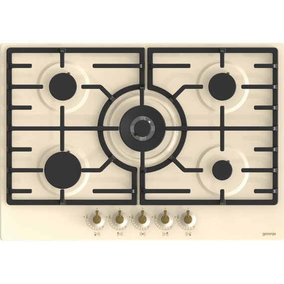 Независимая газовая варочная панель Gorenje GW7C51CLI подойдёт тем, кто ценит как внешний вид, так и отличную функциональность. Её ширина составляет целых 75 см, а сами горелки расположены настолько грамотно, что вы сможете задействовать все зоны нагрева одновременно. Дизайн прибора относится к коллекции Classico. Несмотря на общий ретро-стиль, она так названа из-за приверженности к классическому подходу в приготовлении пищи. Цвет слоновой кости удачно дополняется фурнитурой под бронзу, а также чёрными держателями.